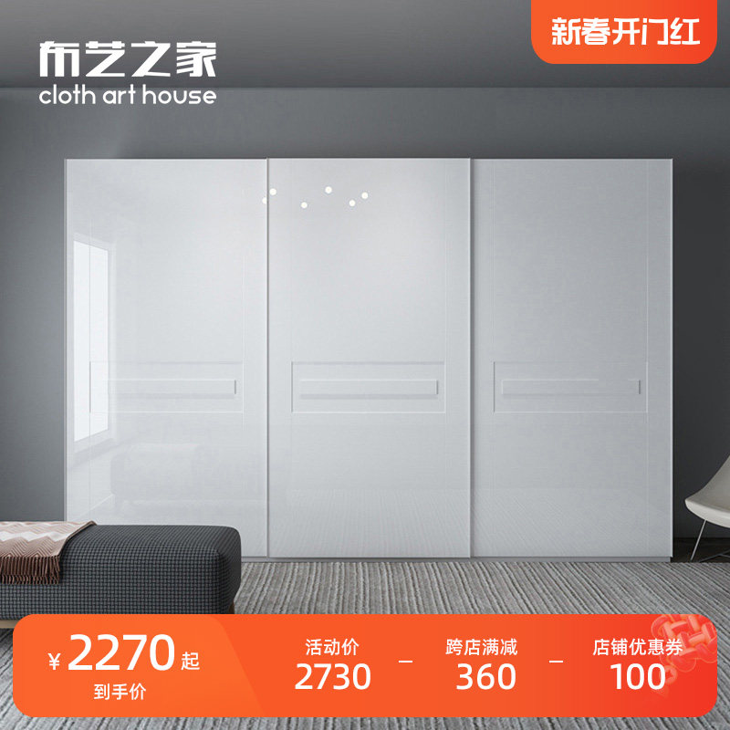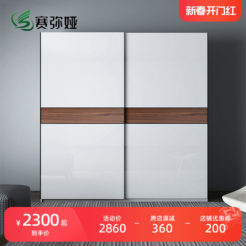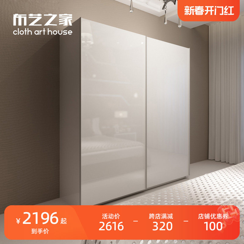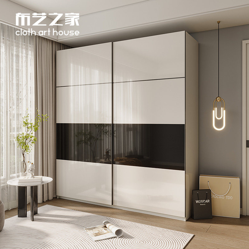 经济型简约现代卧室衣柜推拉门烤漆衣橱滑门移门整体板式家具定制