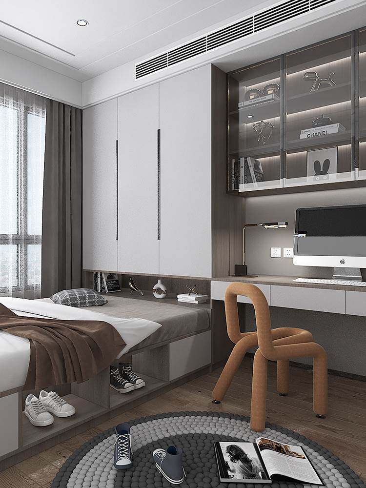 现代卧室榻榻米床衣柜一体整体儿童房全屋定制书桌家具