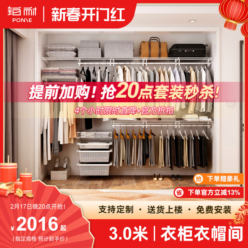 3米铂耐开放式整体砌墙简约现代衣帽间卧室环保衣橱挂墙衣柜衣架