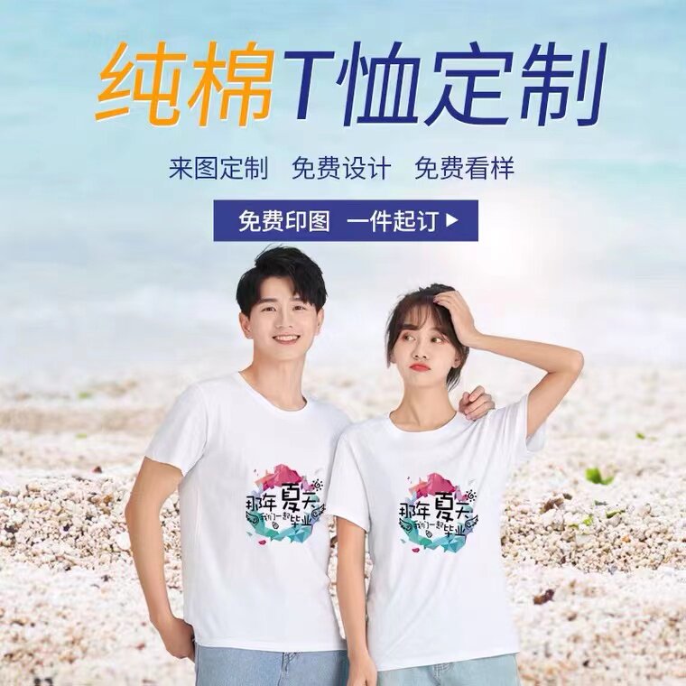 夏纯棉T恤印字刺绣班服毕业季同学聚会t恤衣服广告企业文化衫工作