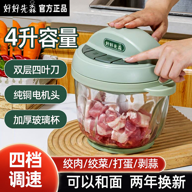 好好先森绞肉机多功能家用电动大容量全自动玻璃打馅料理蒜蓉机
