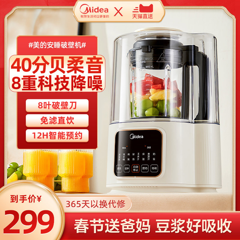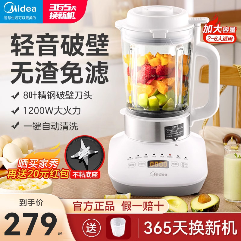 美的破壁料理机家用全自动免煮豆浆免过滤榨水果汁低音搅拌机正品