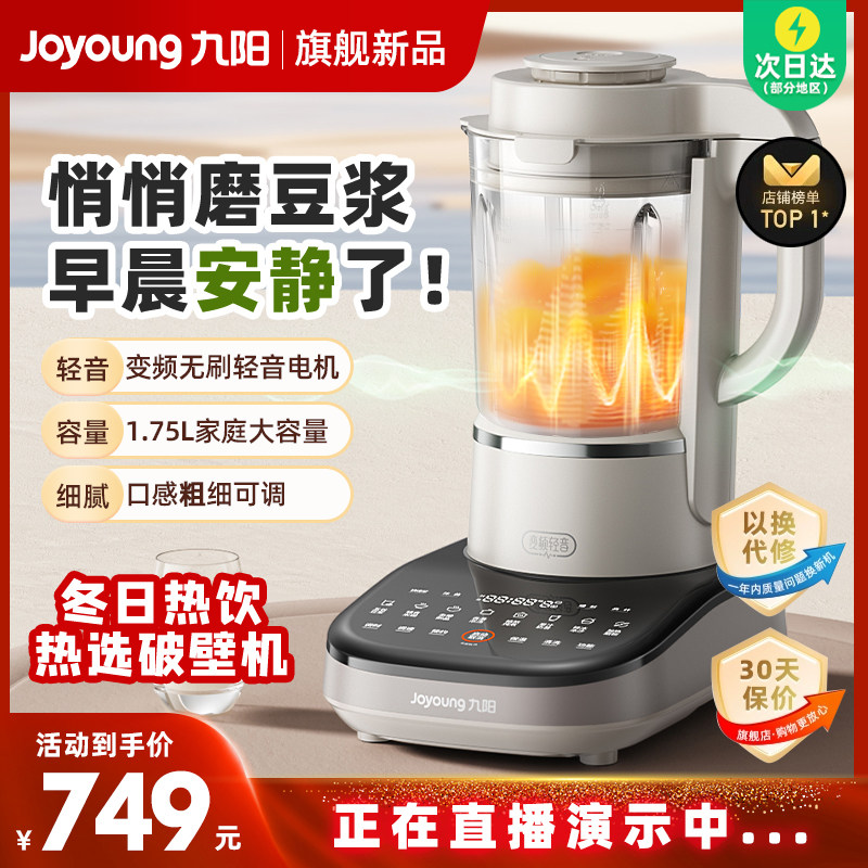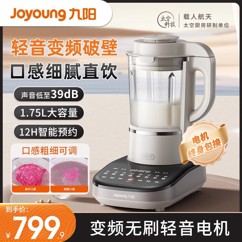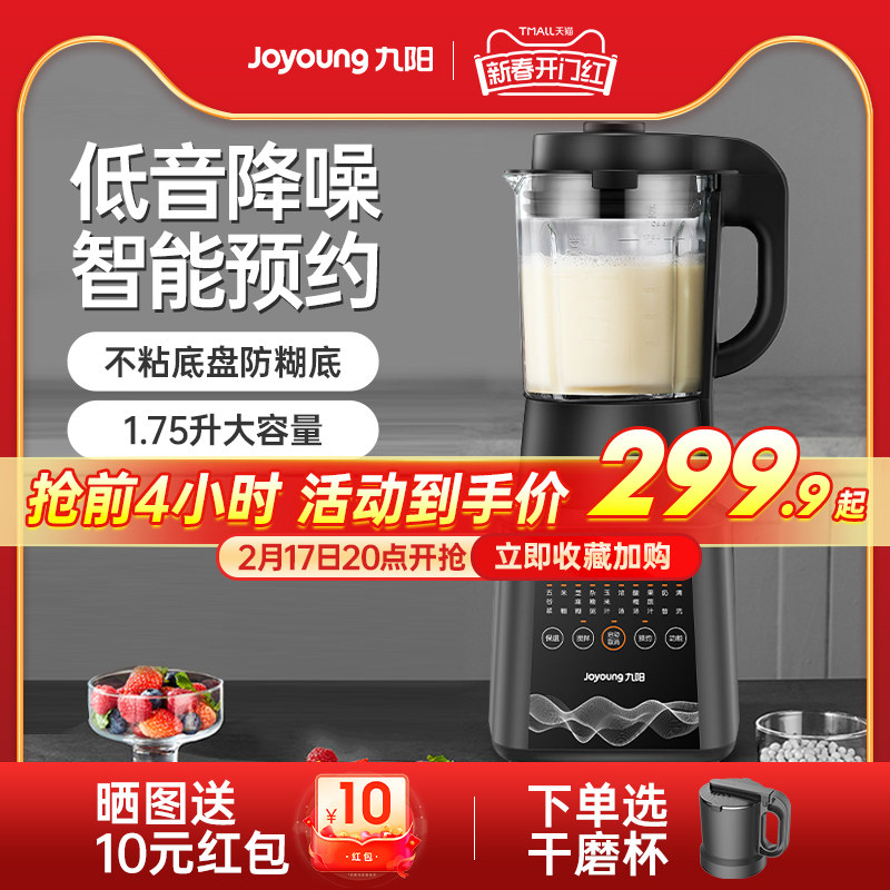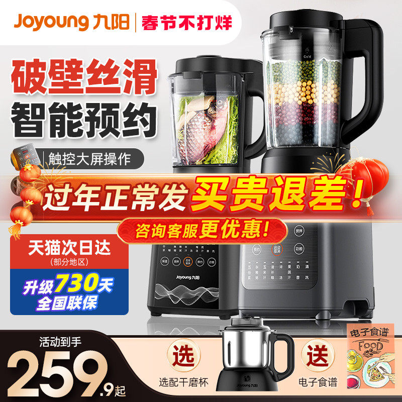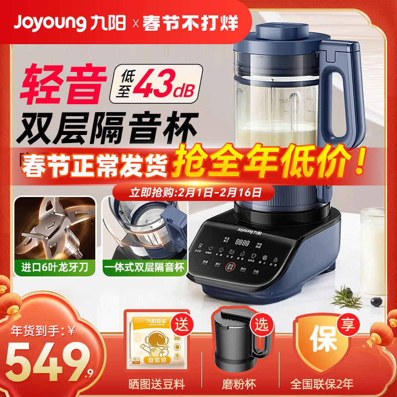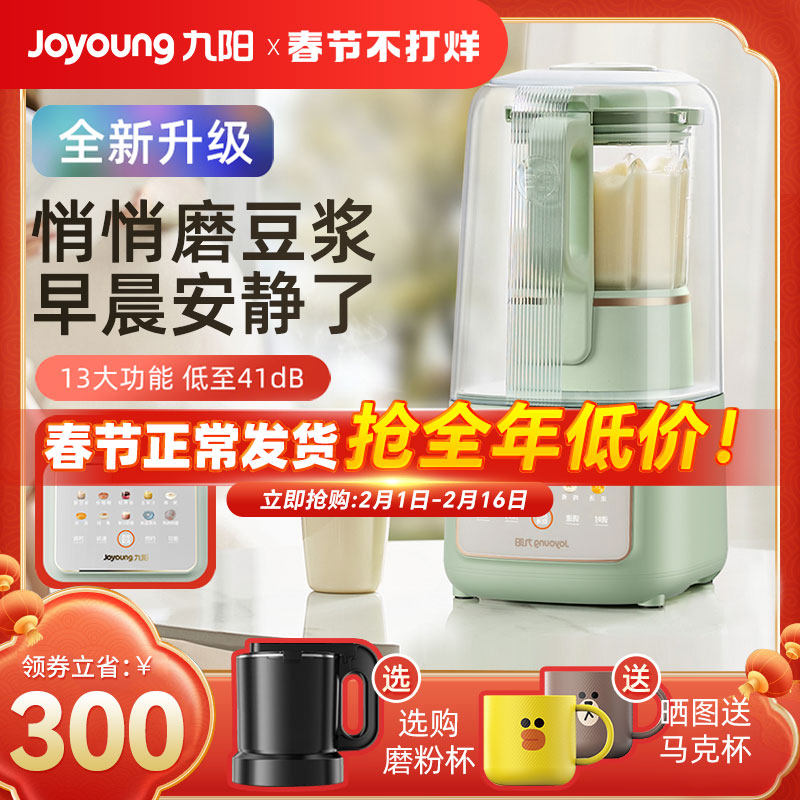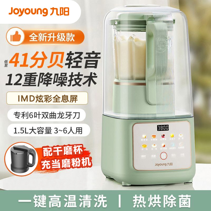 九阳轻音彩屏破壁机家用免滤预约豆浆机多功能隔音料理榨汁辅食机
