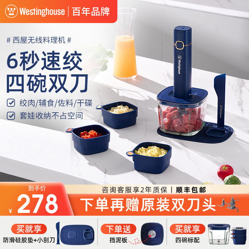 美国西屋绞肉机家用无线多功能料理机小型辅食机肉馅蒜泥搅拌机