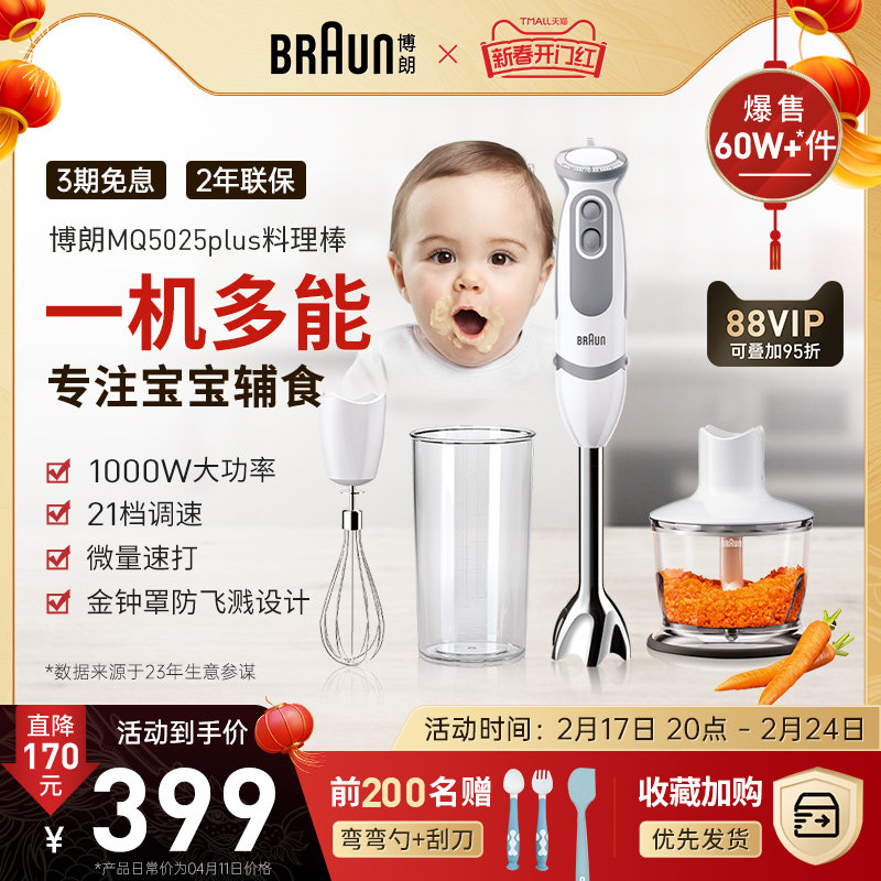 博朗5025P料理棒 小型婴儿宝宝多功能辅食机搅拌手持式榨汁料理机
