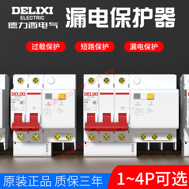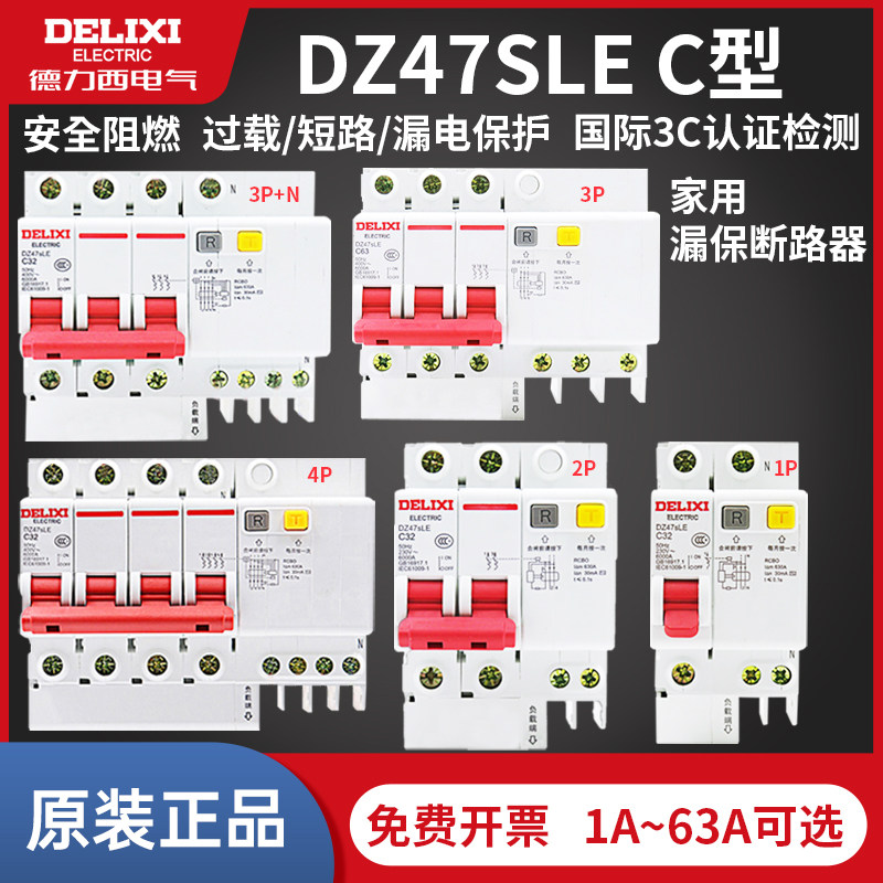 德力西DZ47SLES漏电保护器2P家用1P63A 三相3P+N断路器4P空气开关