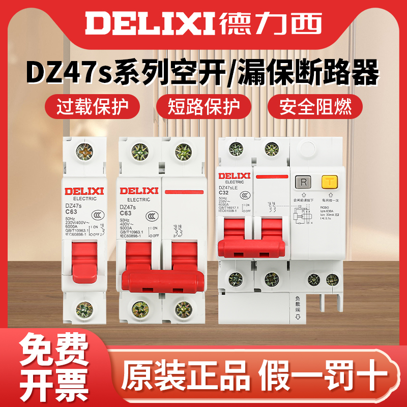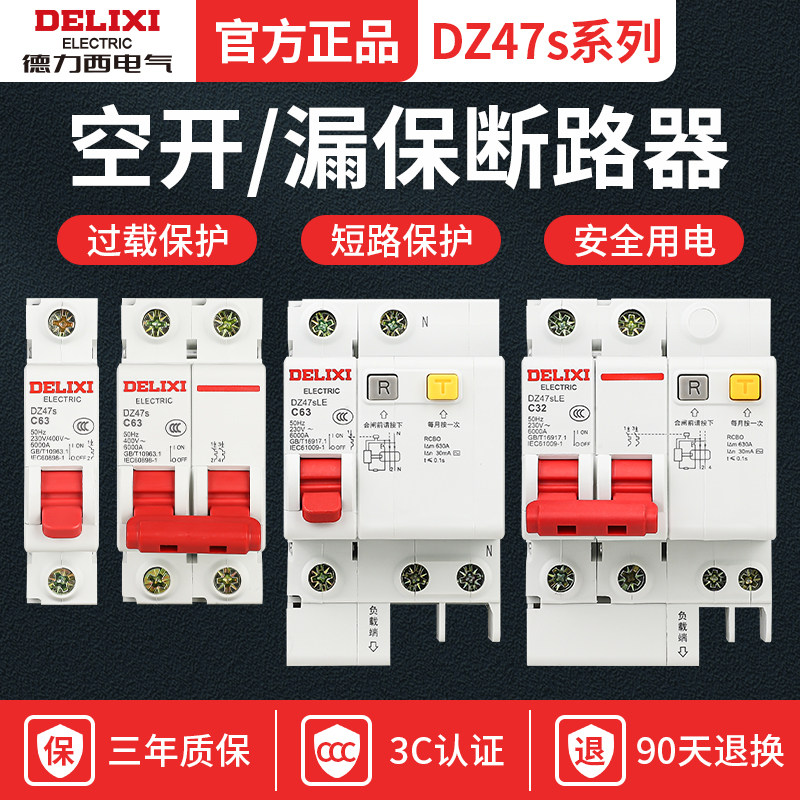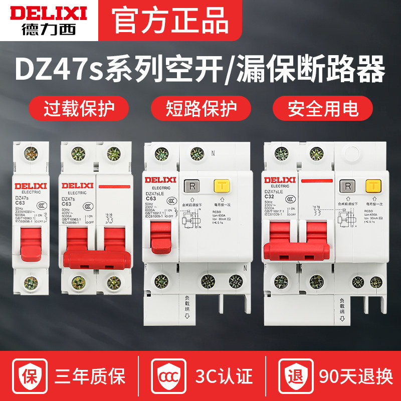 德力西dz47s空气开关1p空开2家用3断路器40保护63a漏电闸三相32安