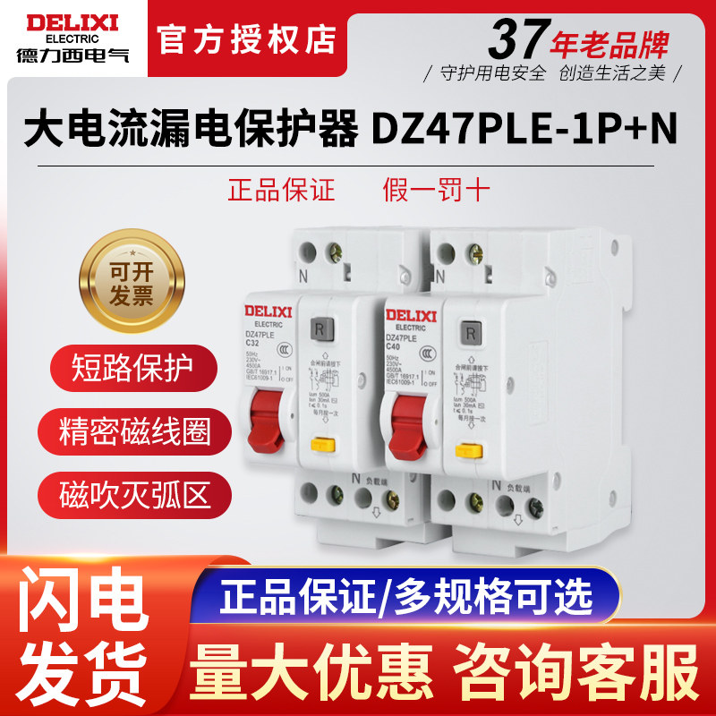 德力西漏电保护开关家用220v空气开关断路器1P+N 32A带漏电保护器