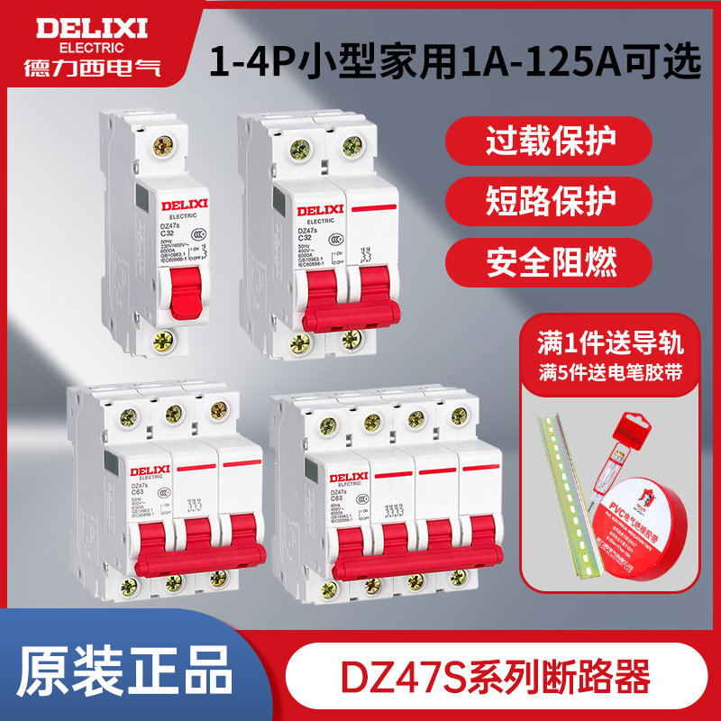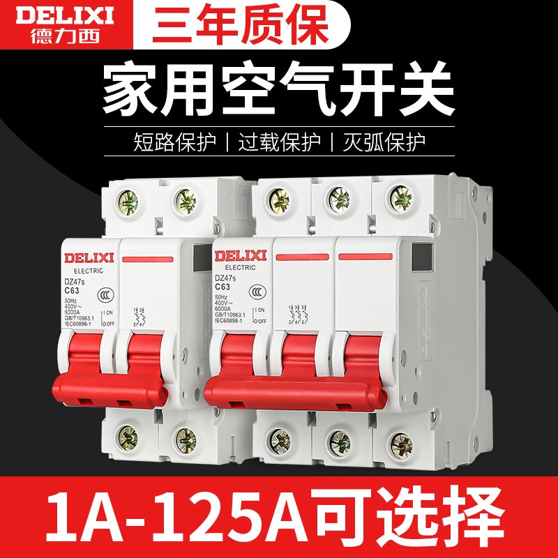 德力西dz47s空气开关1p家用空开2p3p4p小型断路器总电闸16a32a63a