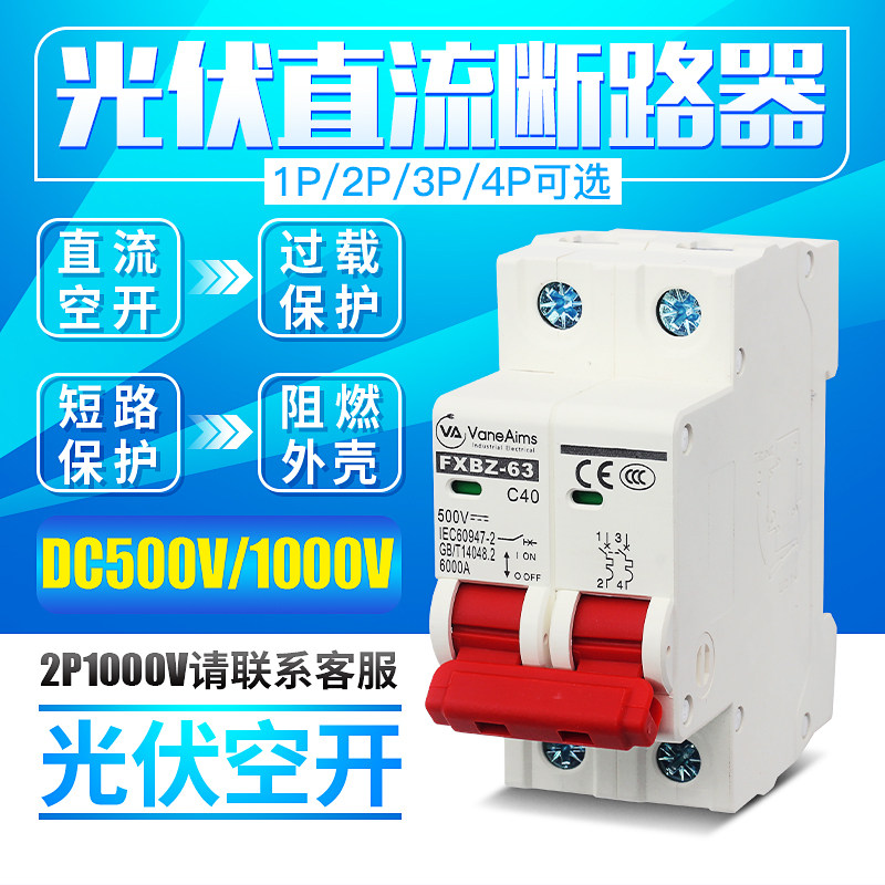 直流断路器DC1000V500V光伏空气开关太阳能 UPS电机电瓶电动车63A
