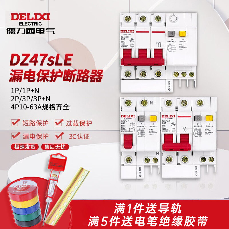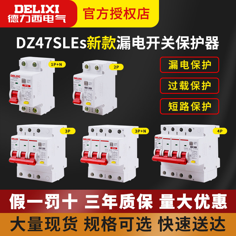 德力西空气开关2P3P小型家用漏电闸开关三相短路保护空开关断路器