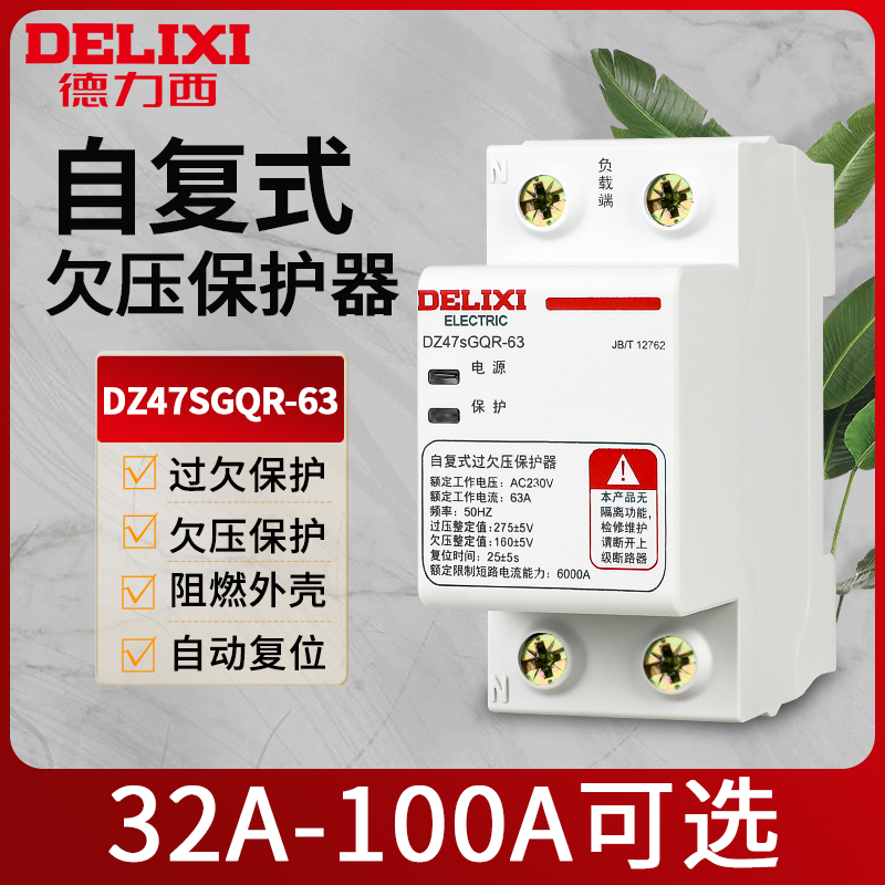 德力西断路器自复式过欠压保护器自动复位40A50A 63A家用空开220V