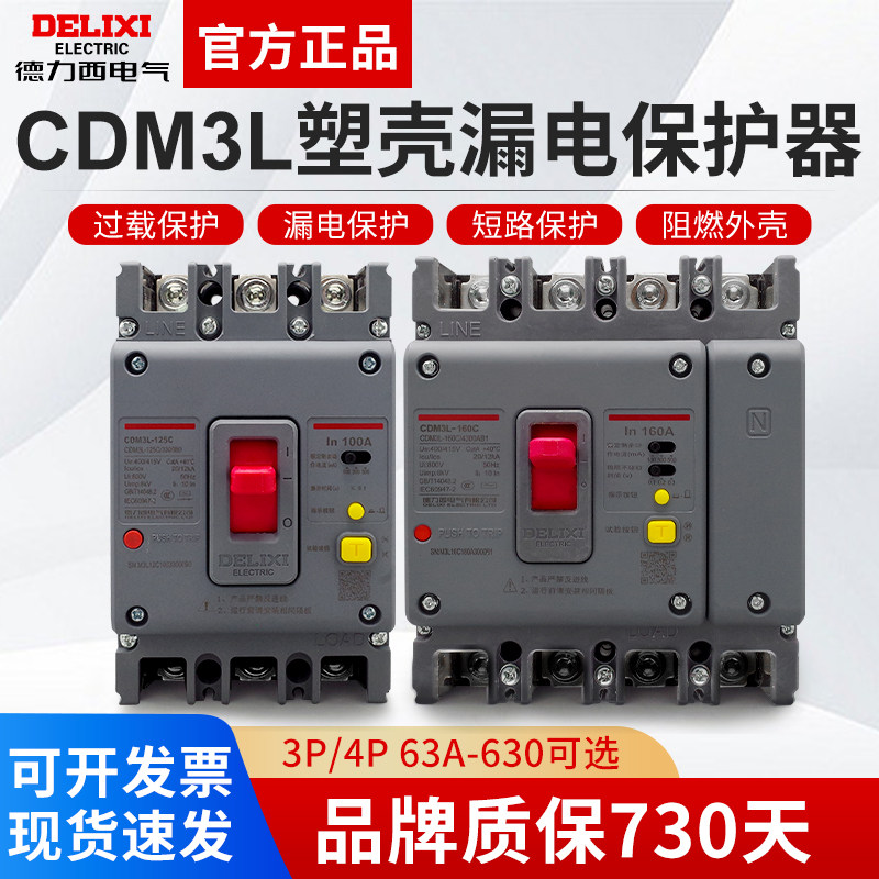 德力西空气开关带漏电保护CDM3L-160A250A400A三相四线塑壳断路器