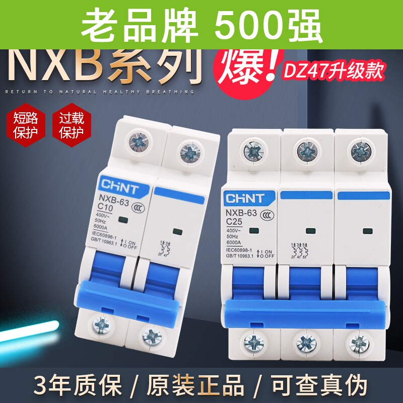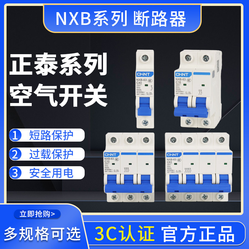 正泰空气开关NXB家用空开chint断路器1P2P4p63A三相电保护电闸100