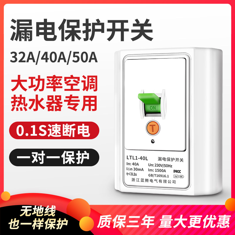 3匹柜机空调专用漏电开关保护器32A电热水器220V家用断路器漏保