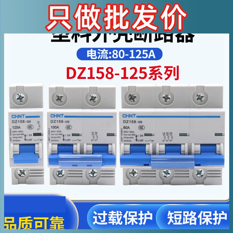 正泰小型断路器家用空开DZ158 1 2 3 4P 100A 大功率空气开关80A