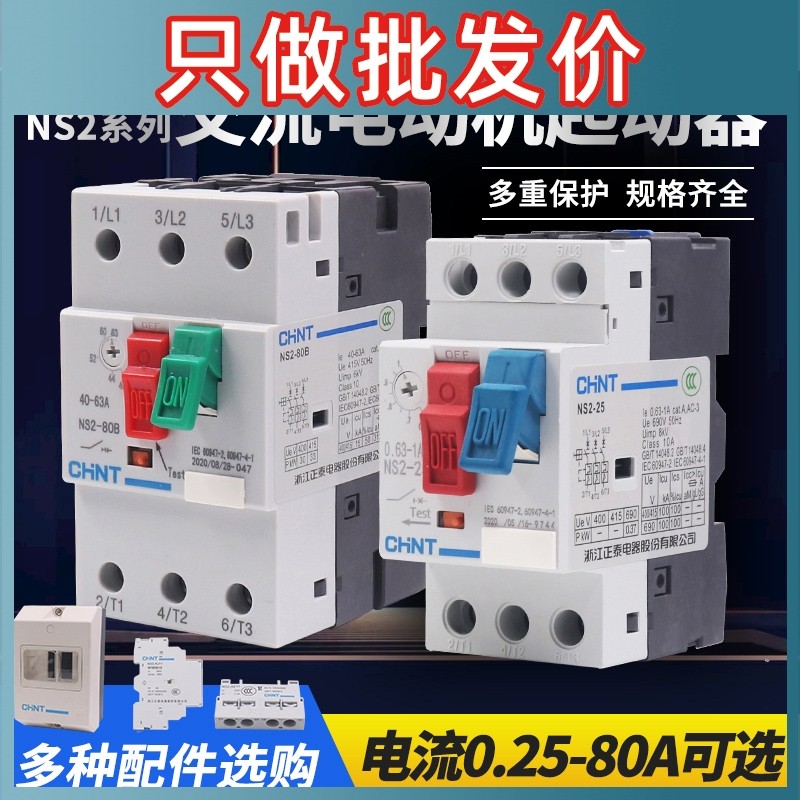 正泰电动机10a马达4a启动断路2.5a交流过载保护器NS2-25开关电机X