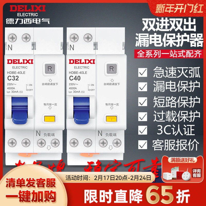 德力西漏电保护器官方店空气开关断路器空开漏保电闸家用空调配电