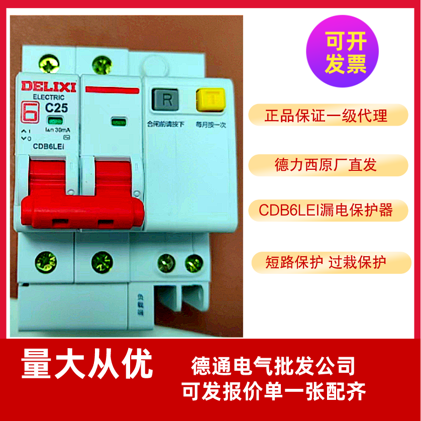 德力西空气开关带漏电保护器CDB6LEi断路器220v空开2p漏保32a短路