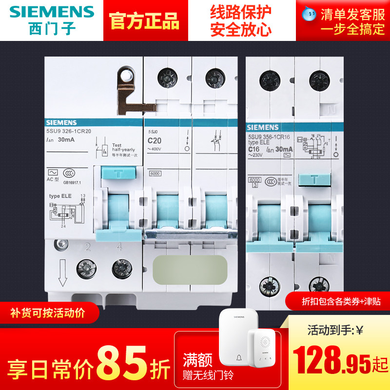 西门子漏电保护器空气开关带漏保家用2P32A63A断路器1P+N总闸
