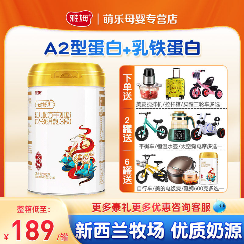雅姆婴幼儿宝宝羊奶粉3段600克1-3岁新西兰奶源