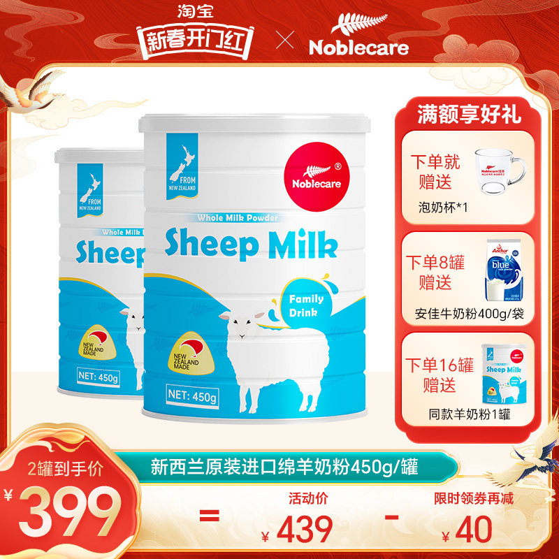【2罐】新西兰进口纯绵羊奶粉成人儿童青少年中老年人补高钙无糖