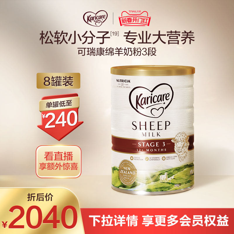 新西兰karicare可瑞康绵羊奶粉3段900g*8罐装
