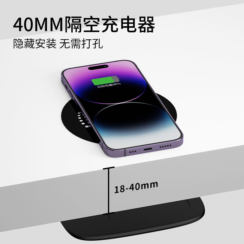 WENERGY隔空无线充电器超远距离40mm无线充电板桌面下岩板万能充电底座适用于苹果15小米华为iPhone15/14三星