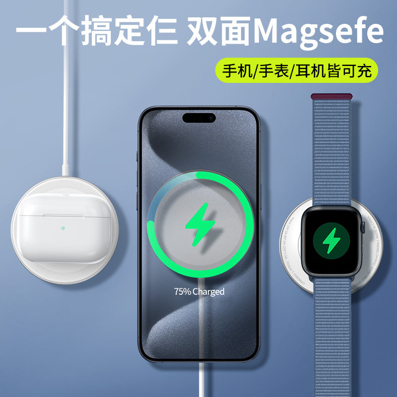 冠渠适用MagSafe三合一无线充苹果15ProMax磁吸式14手表iWatch充电器iPhone13手机airpods耳机快充applewatch