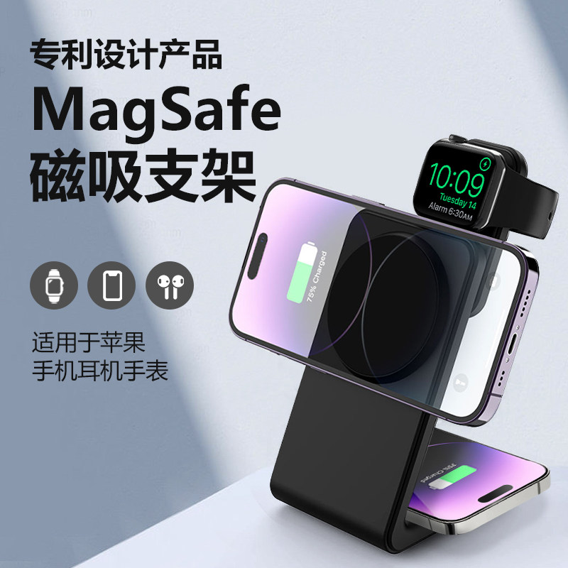 三合一无线充电器支架适用apple watch手表iwatch苹果15充电座iphone14快充磁吸magsafe底座airpods蓝牙耳机