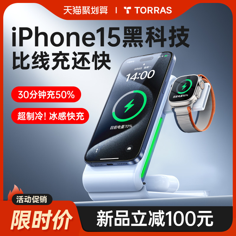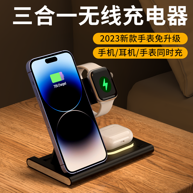 三合一无线充电器适用iwatch手表applewatch充电底座S9/8苹果14快充支架iPhone15promax手机magsafe磁吸耳机