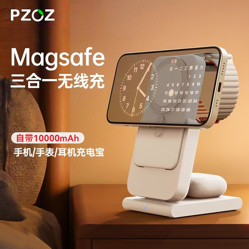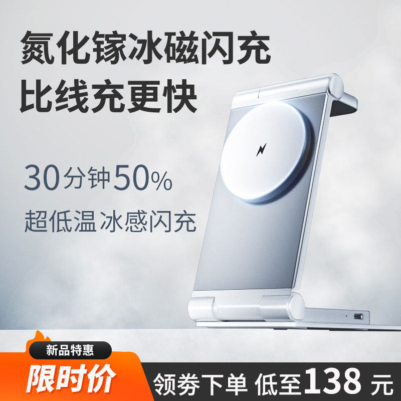 爵位 magsafe磁吸支架适用苹果三合一无线充电器iwatch底座手机手表二合一充电宝可拆卸折叠appleiPhone快充