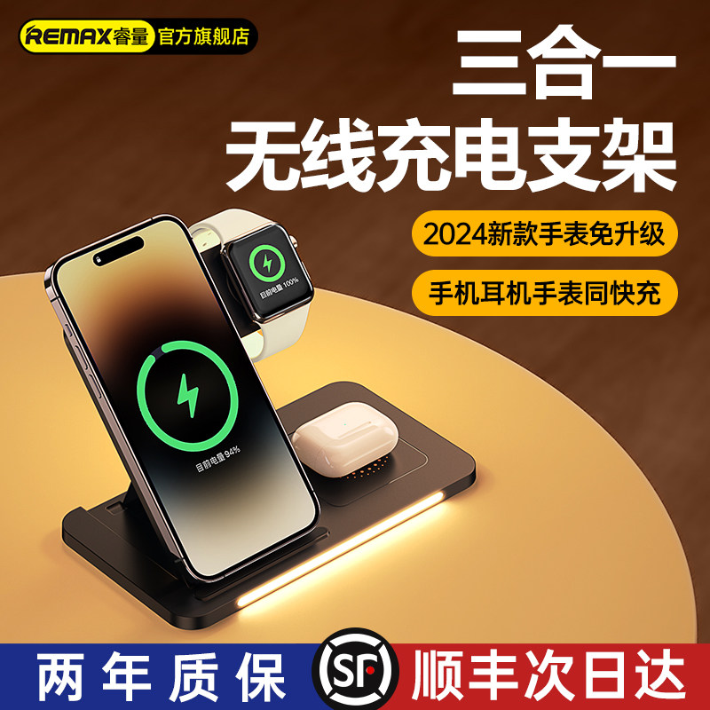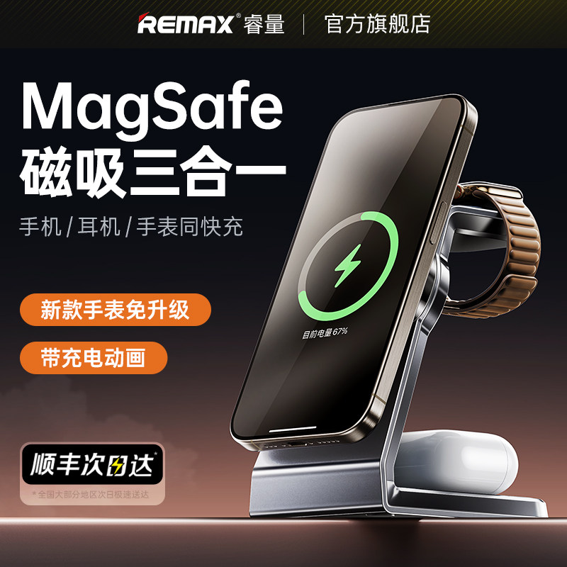 睿量三合一无线充电器applewatch手表iwatch充电座苹果14快充支架适用iphone15磁吸magsafe底座airpods耳机