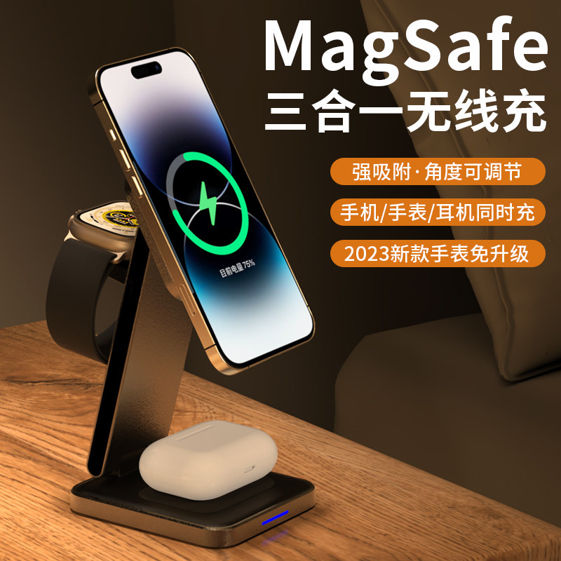 苹果无线充电器三合一Magsafe磁吸充电座iPhone15/14ProMax手机airpods耳机applewatch手表iWatch s9快充支架