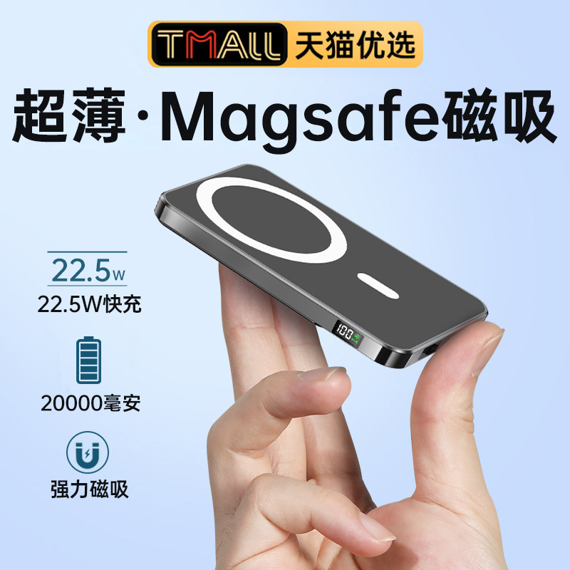 磁吸无线充电宝Magsafe适用苹果15ProMax超薄iPhone13充电器专用14便携20000毫安大容量手机移动电源2024新款