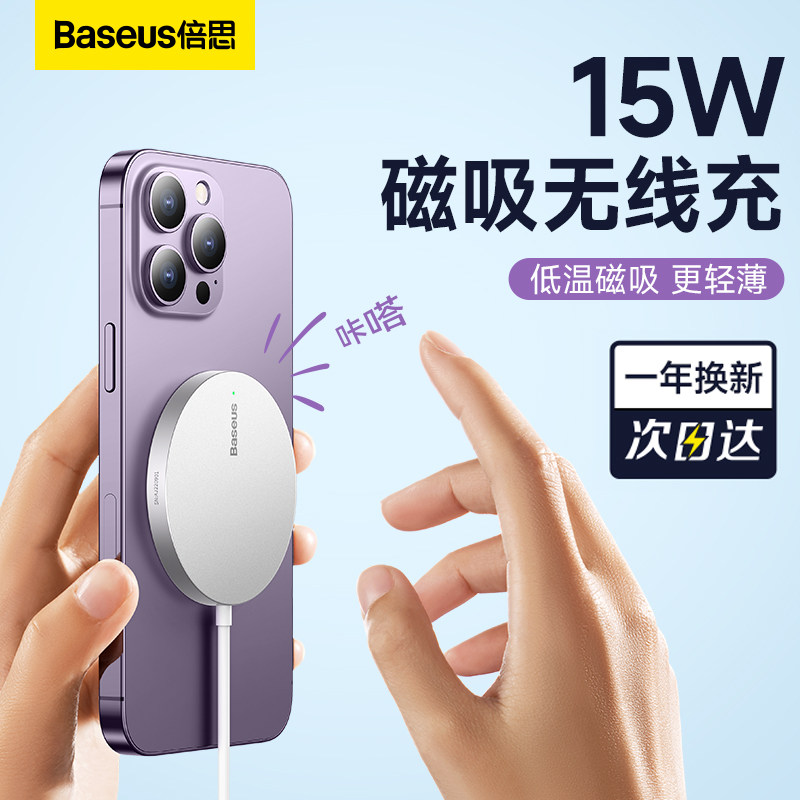倍思无线充电器适用magsafe苹果14磁吸数显15w桌面充电板底座13promax手机iphone12快充插头超薄万能通用正品