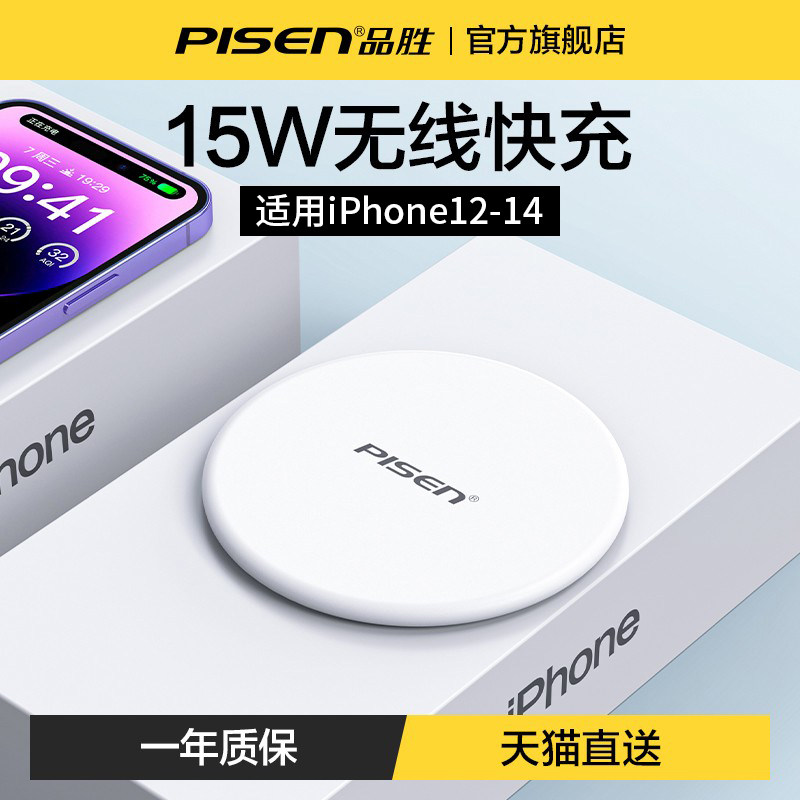 品胜适用苹果iPhone14无线充电器magsafe磁吸式15W 13pro手机max港版11plus专用配件12无限x快充xs20W插头xr