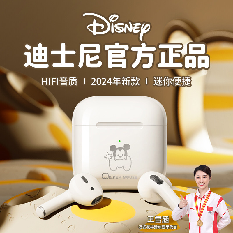 迪士尼蓝牙耳机正品新款2024真无线超长续航可爱迷你降噪男女运动