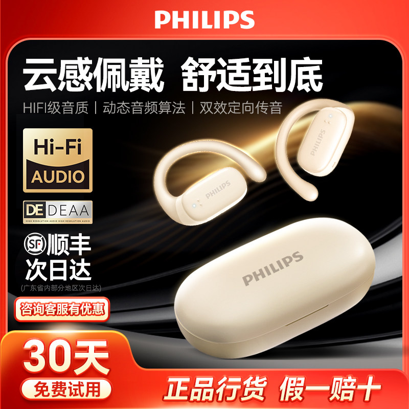 2024新款飞利浦TAT3708挂耳式蓝牙耳机气骨传导无线不入耳开放式