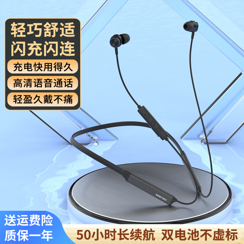 超长续航无线蓝牙耳机颈挂脖式高品质降噪运动型跑步适用苹果华为