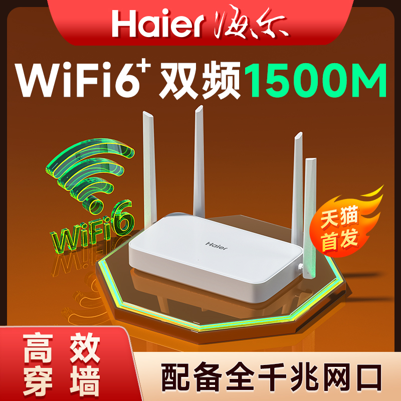 Haier/海尔路由器家用高速全千兆官方旗舰店WiFi6无线穿墙王wifi全屋覆盖宿舍官网5G无线路由器AX1500