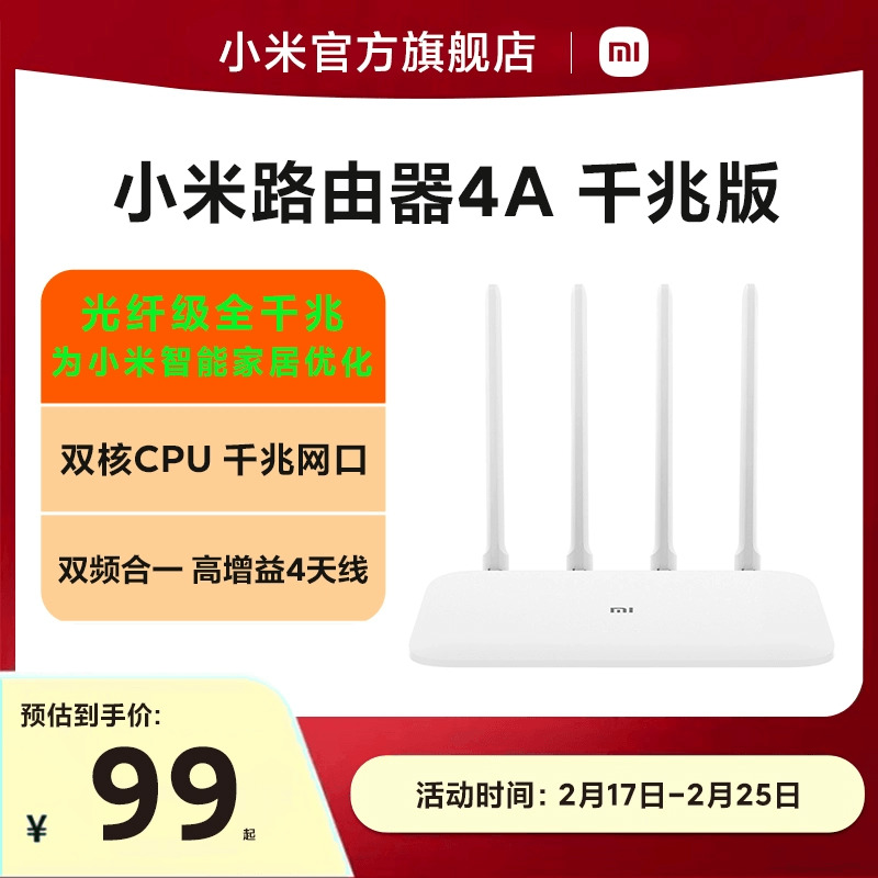 小米 双频千兆路由器 4A千兆家用高速无线路由千兆5G中小户型覆盖学生宿舍全屋覆盖穿墙wifi游戏光纤