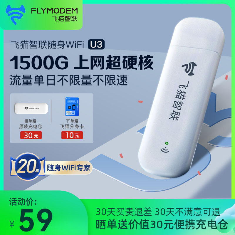 飞猫智联U8随身wifi免插卡无线移动网络wifi通用流量三网通无线wifi便携路由器wifi无线网卡户外车载wifi热点