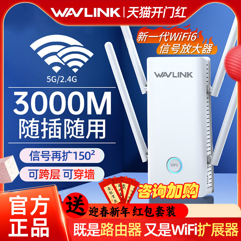 wifi6信号增强放大器家用宽带加强无线网络增强扩大器双频3000M接收器千兆路由器5G扩展器覆盖房间穿墙中继器
