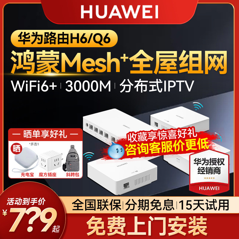 【顺丰当天发】华为Q6子母无线路由器千兆端口大户型别墅光纤家用企业双频mesh高速电力猫版Q6E网线wifi6