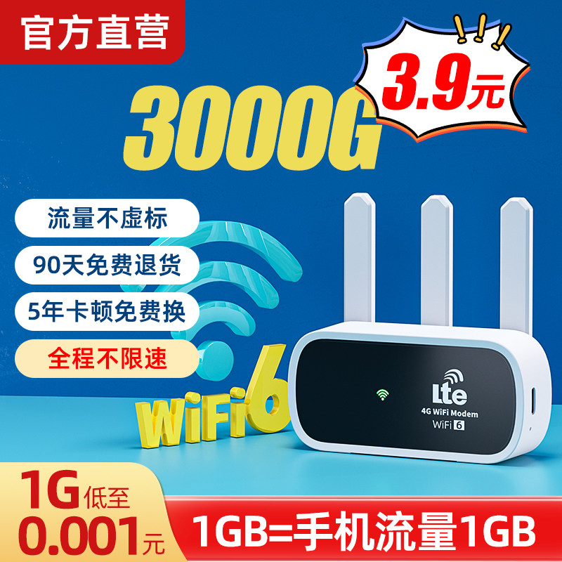 随身wifi无线移动wifi6免插卡三网通便携式热点网络全国通用纯流量上网卡车载流量笔记本电脑宽带智能路由器