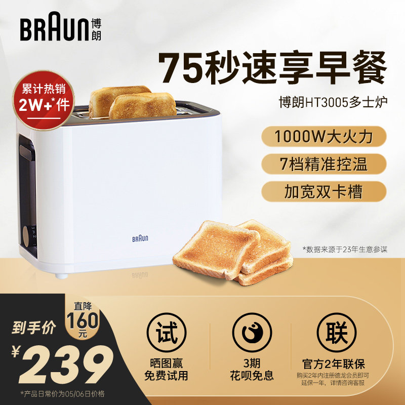 Braun/博朗 HT3005烤面包机吐司机家用全自动早餐机小型烤多士炉