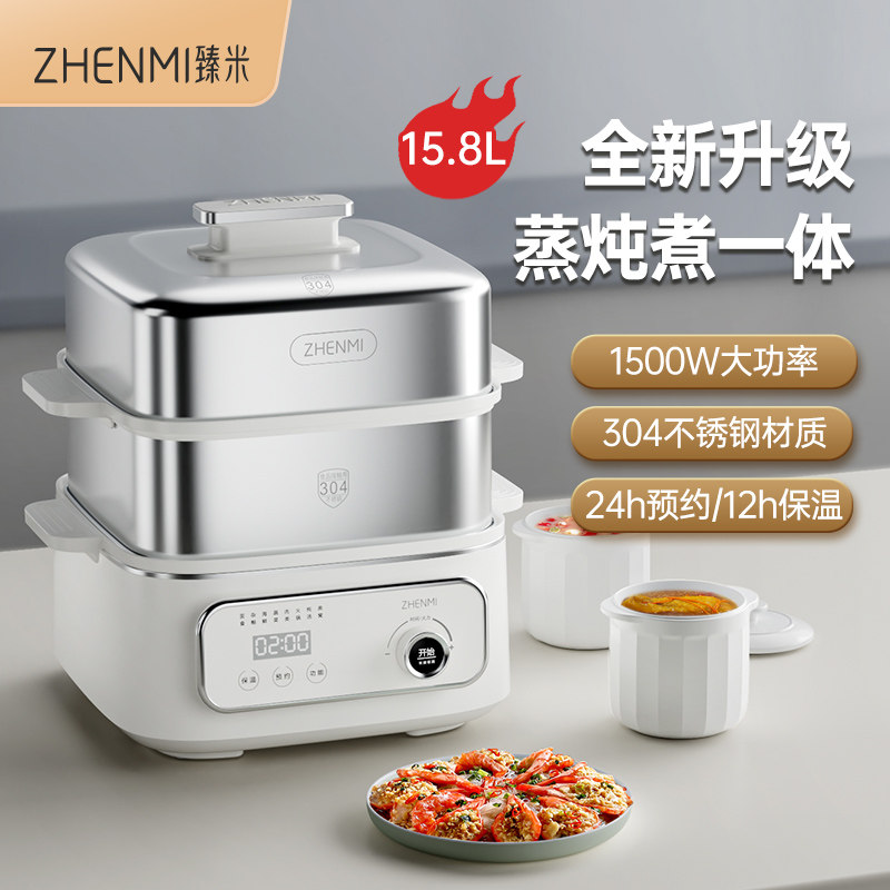 臻米蒸锅电蒸锅不锈钢家用大容量多功能多层早餐机蒸煮炖一体锅