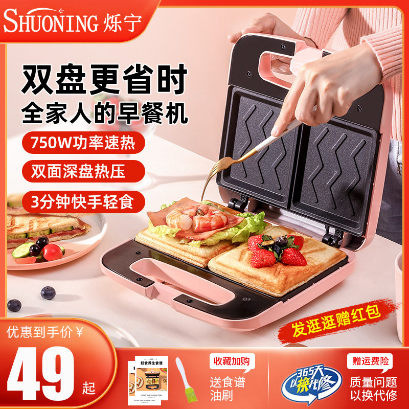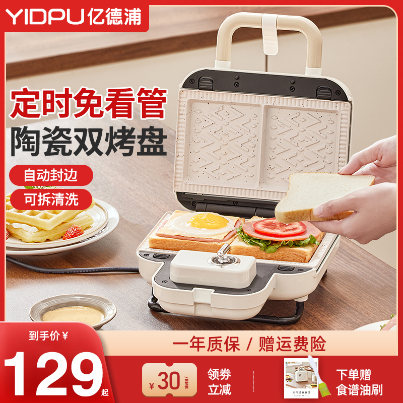 亿德浦双盘三明治早餐机家用定时多功能华夫饼轻食机小型面包机