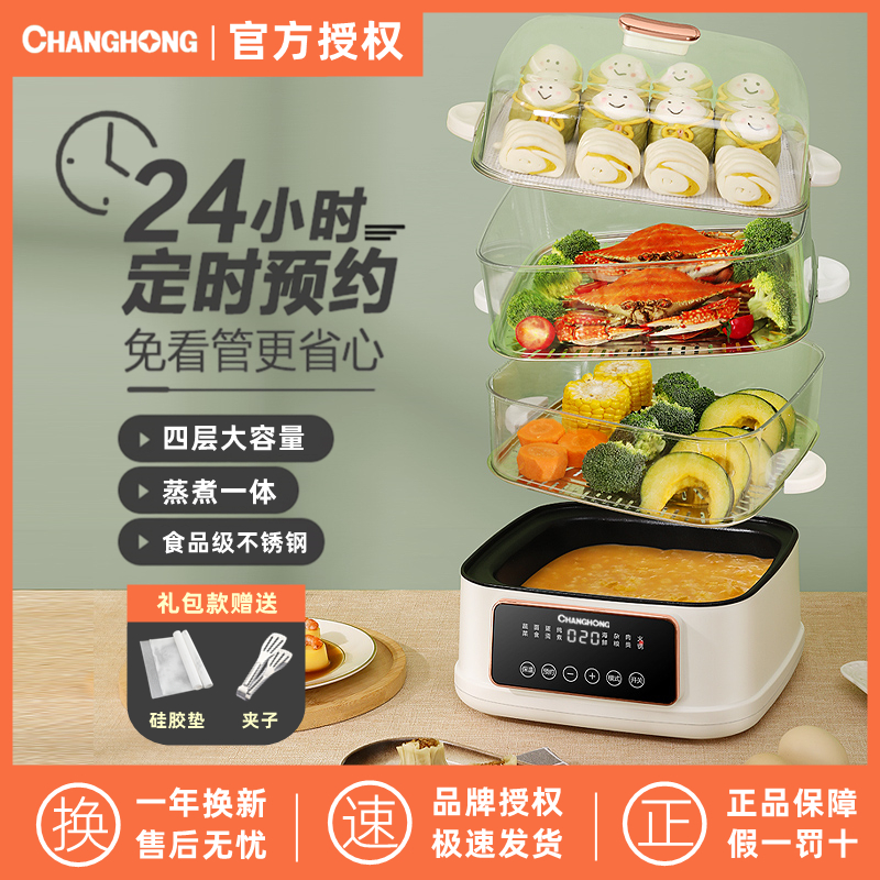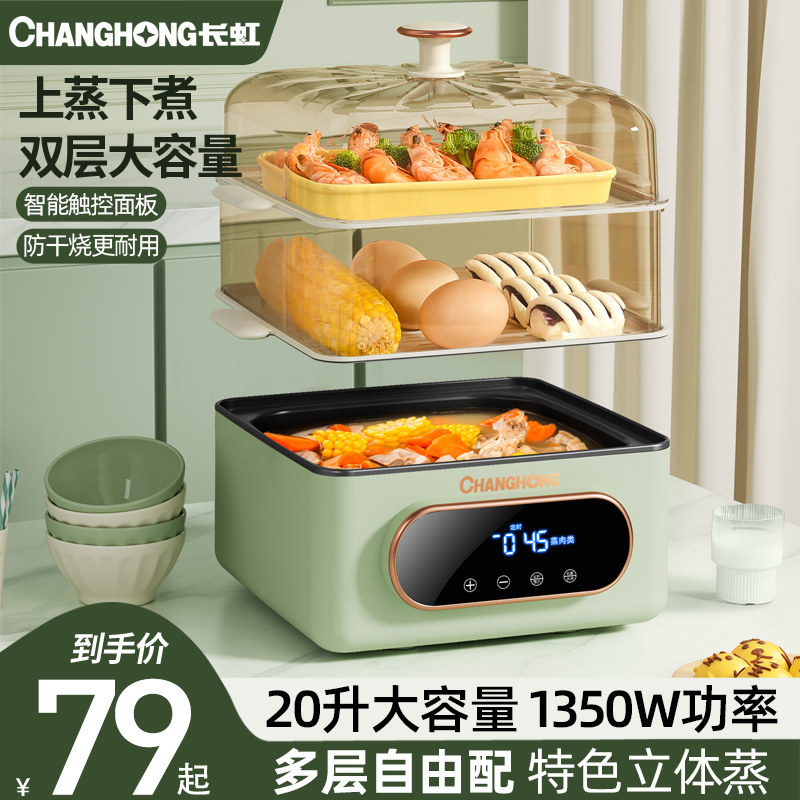 长虹电蒸锅多功能家用三层炖蒸煮一体锅早餐机小型多层蒸笼电蒸箱
